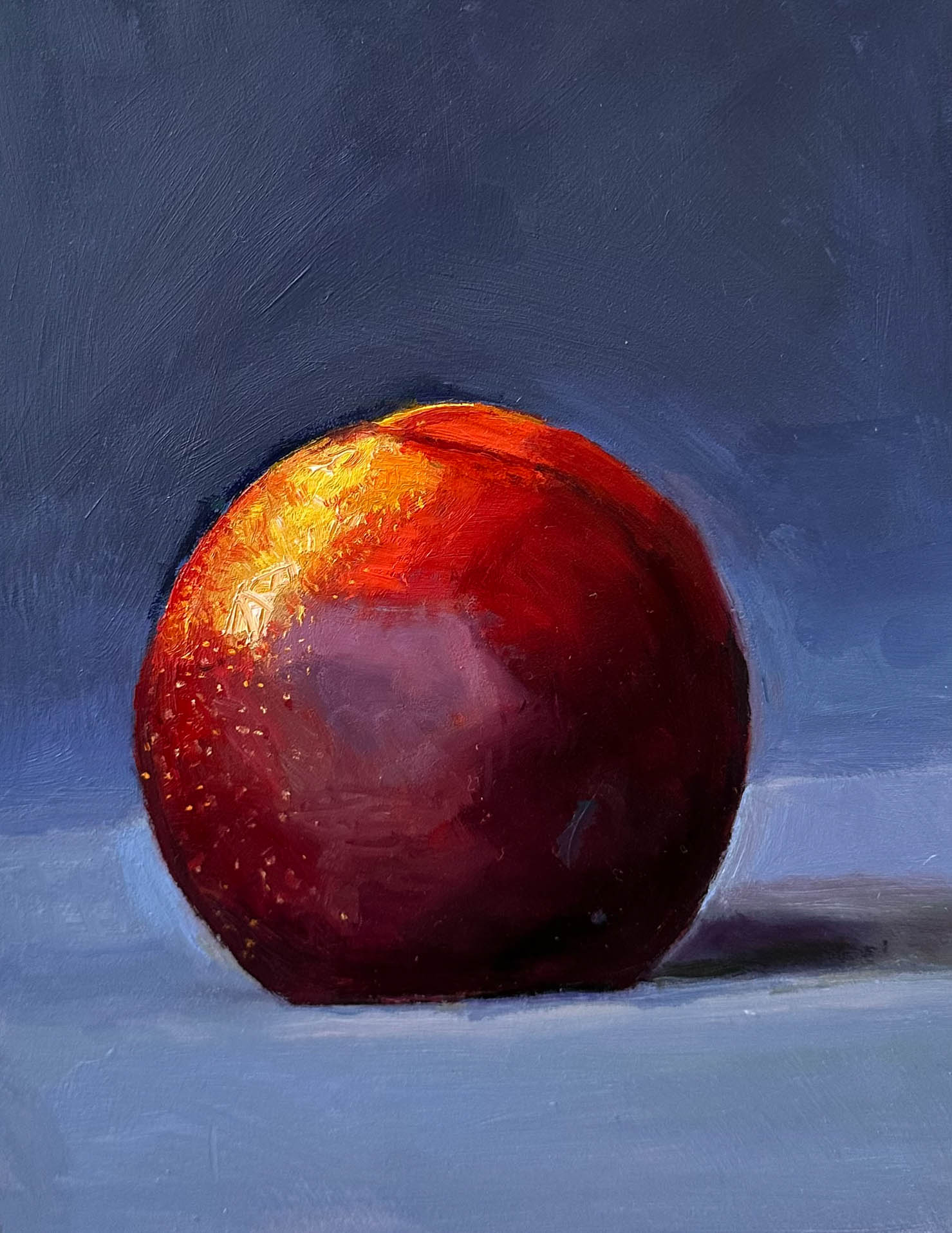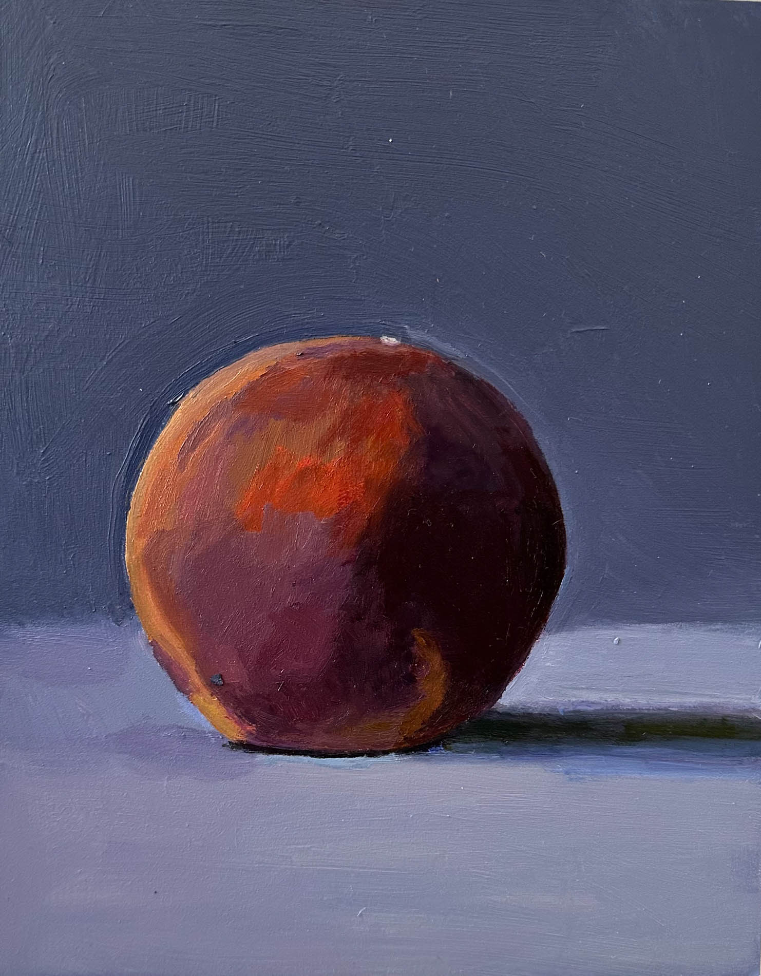 The artist notes: “I started this series in April 2024, and the paintings were completed on August 9. They were all done from direct observation. Early on Monday morning I would go to the flower market in downtown Los Angeles, about fifteen minutes from my studio. I would enter with a vague concept of what type of flowers I was looking for—namely flowers that were somehow in reaction to the painting I had just completed previously. I did about one painting a week. If I was finished by Friday, I would go to the market down the street from my studio and buy fruit, then spend Friday and Saturday on those small paintings. The fruit was more static than the flowers, so I was able to focus on colors and shapes. The flowers were more challenging because they moved slowly but constantly; by the end of the week, they often would have completely changed position. After making many flower paintings, I still find doing them challenging and absorbing.”